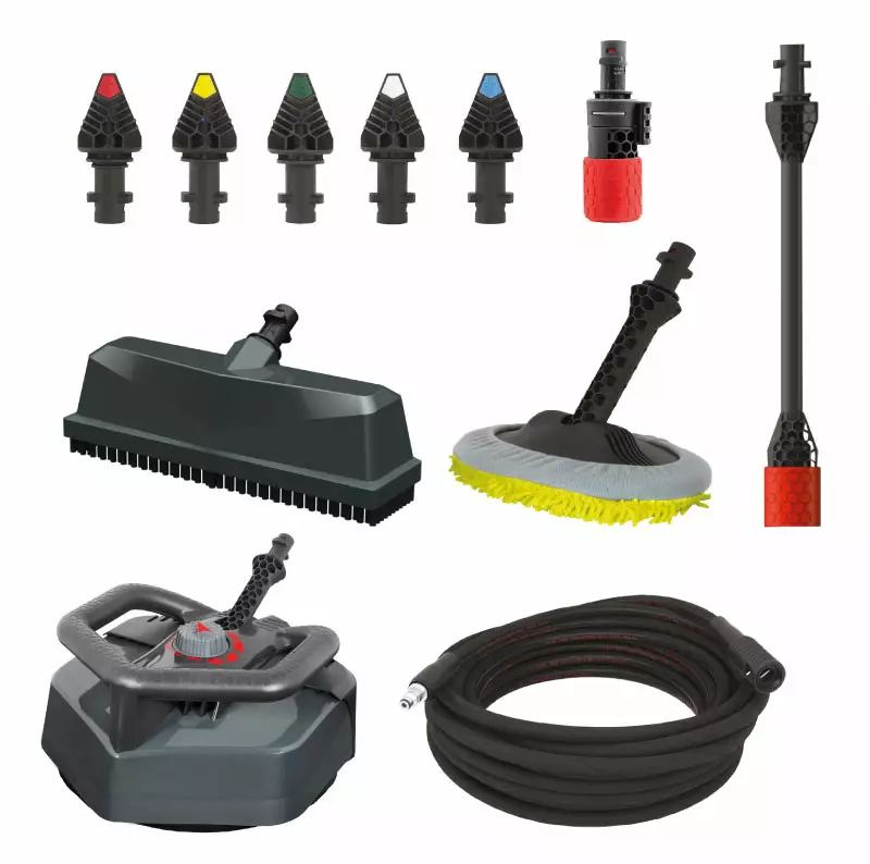 Clen painepesurin varustesarja joka tekee pesemisestä paljon helpompaa ja kätevämpää.