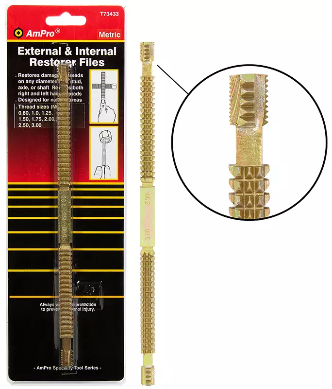 -millisille kierteille (Metric): 0.80, 1.00, 1.25, 1.50, 1.75, 2.00, 2.50, 3.00 -sisä- ja ulkopuolisten kierteiden korjaamiseen -ISO -järjestelmän mukainen -kierreviilan pituus: 230 mm -paino: 121... Lue lisää