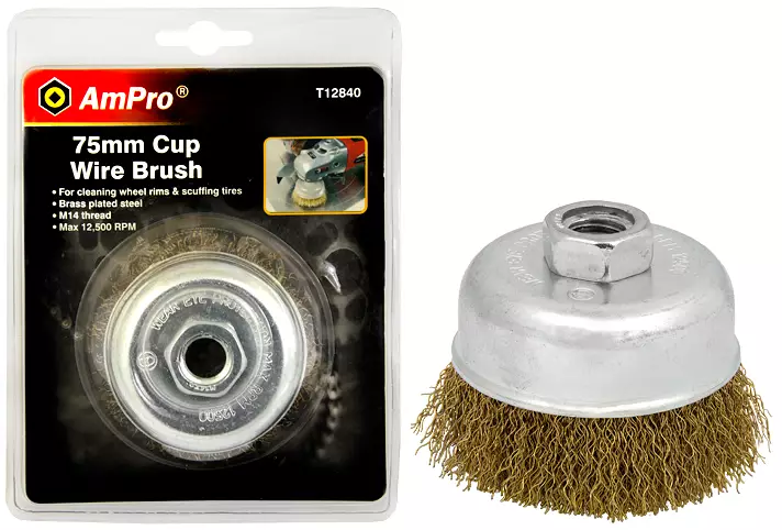 -kulmahiomakoneille -messinkipinnoitettu aallotettu teräslanka, yksittäinen rakenne -lankavahvuus 0,3 mm -kierre M14x2,0 -halkaisija 75mm -max kierrosnopeus 12500 rpm -IP-ripustinpakkaus...