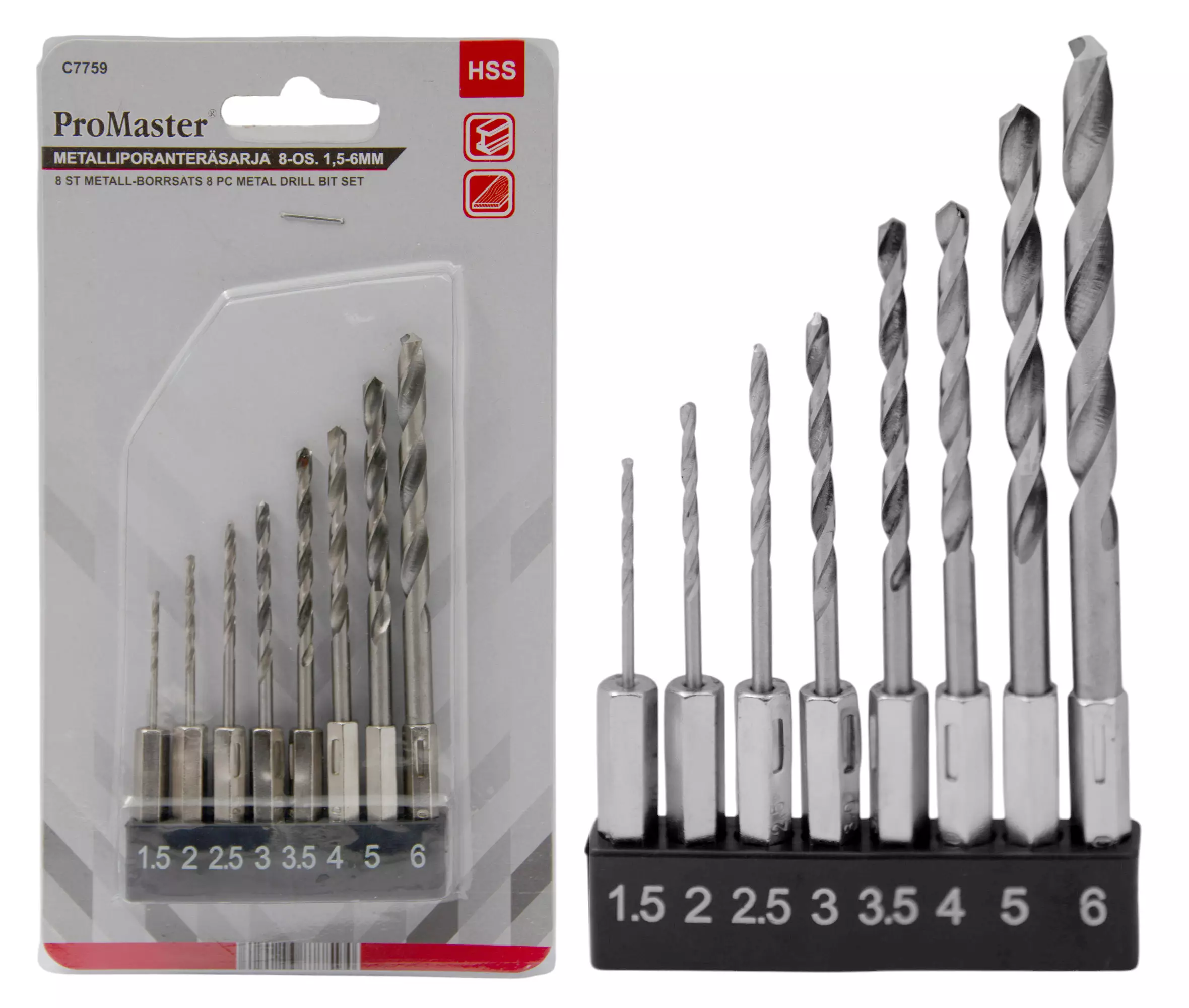 METALLIPORANTERÄSARJA 8-OS. 1,5-6MM HSS