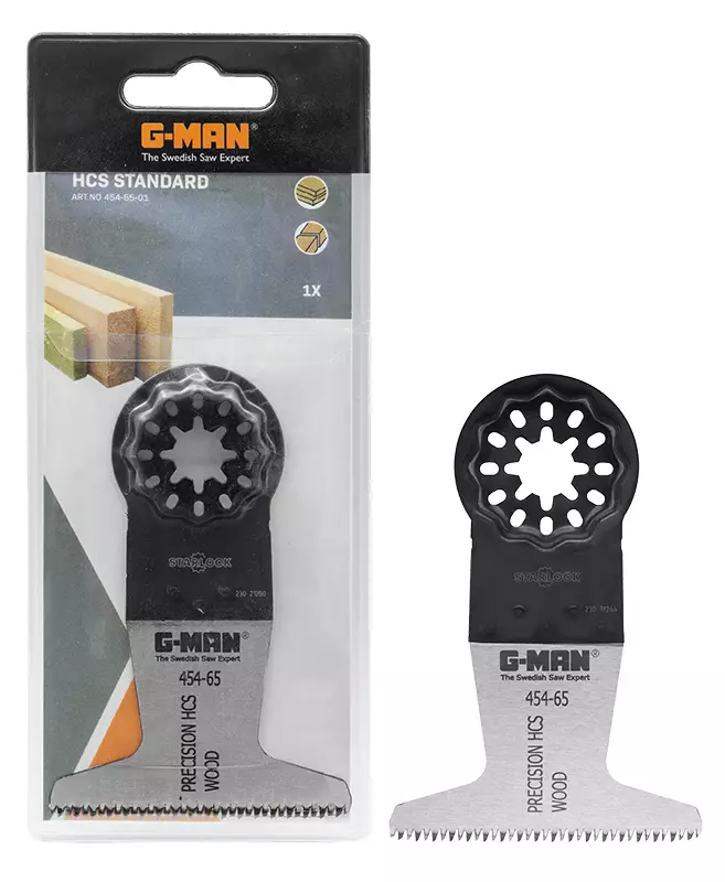 -monitoimityökalun terä puun, kipsilevyn, ja muovin leikkaamiseen -leveys 65mm -pituus 50mm -Starlock kiinnitys -IP-ripustinpakkaus
