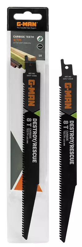 G-Man - Pelastu / Purkuterä - Soveltuu eriomaisesti ajoneuvojen purkuun pelastus tilanteessa. -Terän paksuus 1,35mm - Kyttökohteet mm. ruostumaton teräs - 8 hammasta/tuumalla... Lue lisää