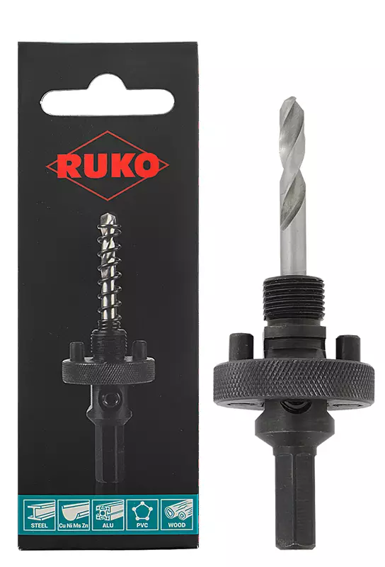 Ruko reikäsahan istukka -reikäsahat halk. 32-210 mm -materiaali HSS -tyyppi A6 -varsi halk. 11,0 mm -varsi malli: kuusikulma -kierre 5/8" x 18 -kartonkipakkaus