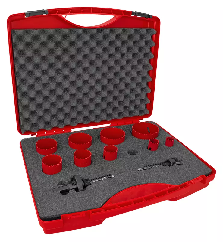 11-osainen reikäsahasarja -sarja sisältää --9 kpl reikäsahoja, koot 19, 22, 29, 35, 38, 44, 51, 57 ja 64 mm --2 kpl reikäsahan istukkaa, mallit A2 ja A4 Reikäsahat: -materiaali bi-metallia;... Lue lisää
