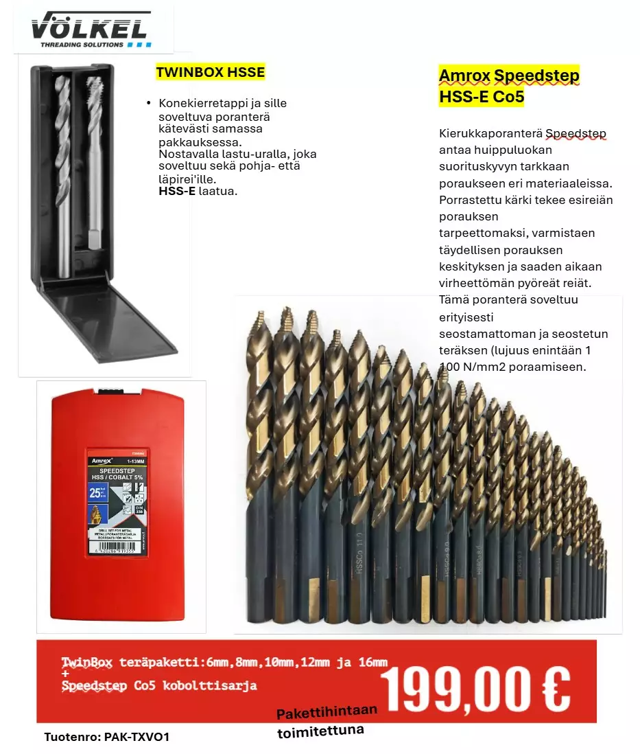 TWINBOX HSS-E konekierretappi ja silli soveltuva poranterä.