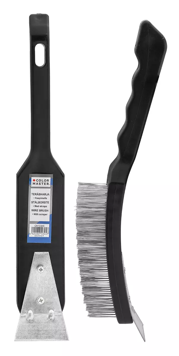 Color Master -Lohkeilevan maalin ja ruosteen poistoon -Muotoiltu kahva -6-rivinen harjaosa -Teräskaapimella