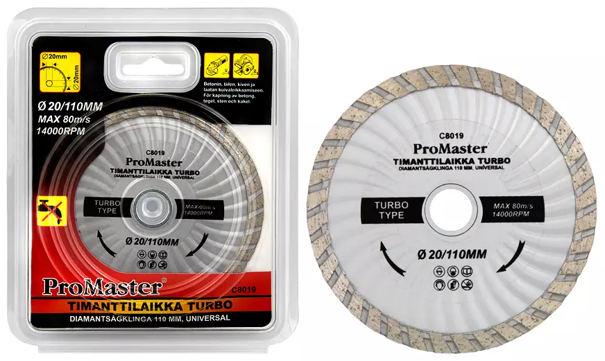 ProMaster -soveltuu mm. betonin, kiven, kattotiilien, muurauksen, asfaltin, graniitin ja marmorin kuivaleikkaamisen -laikan halkaisija Ø 110 mm -laikan paksuus 2,2 mm -keskireiän halkaisija... Lue lisää