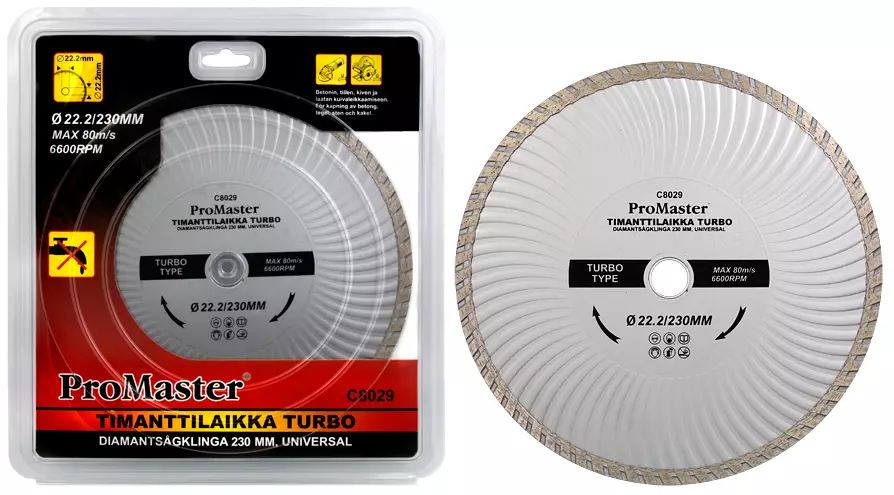 ProMaster -soveltuu mm. betonin, kiven, kattotiilien, muurauksen, asfaltin, graniitin ja marmorin kuivaleikkaamisen -laikan halkaisija Ø 230 mm -laikan paksuus 2,4 mm -keskireiän halkaisija 22,2 mm... Lue lisää