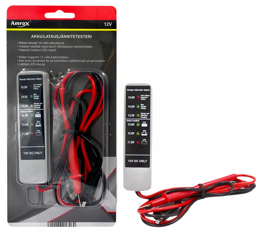 -12 V akun jännitteen/latauksen mittaamiseen -LED-valolla -IP-ripustinpakkaus -takuu 1 vuosi