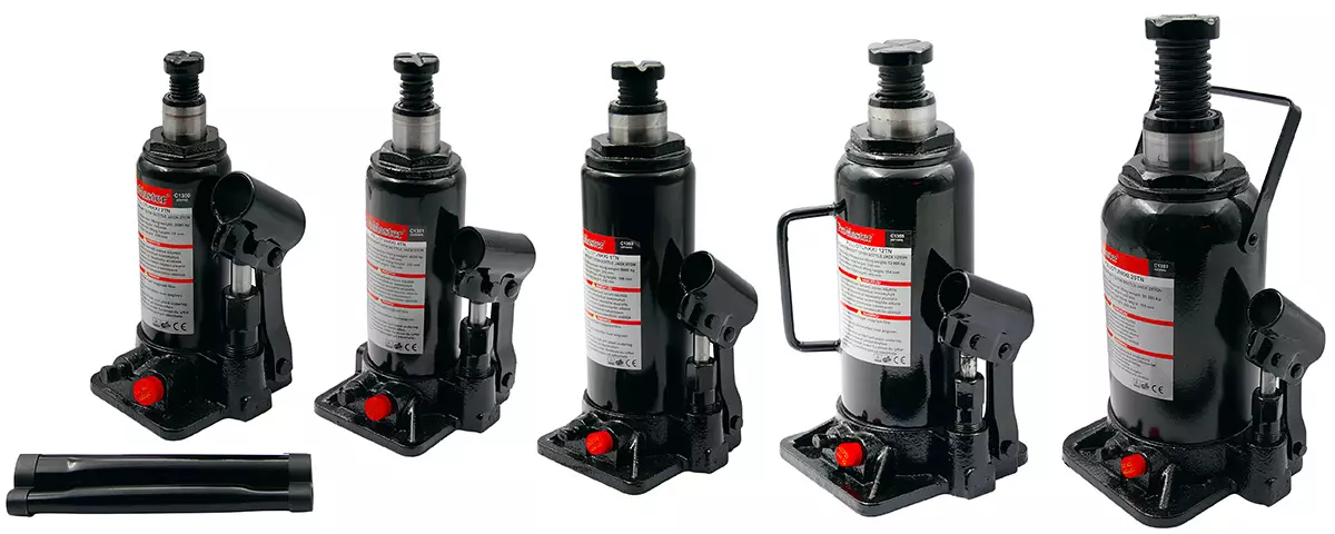 Ajoneuvojen, koneiden, perävaunujen ja asuntoautojen nostamiseen. Ihanteellinen renkaiden vaihtoon ja korjaustöihin. Turvaventtiilillä. Teleskooppinen