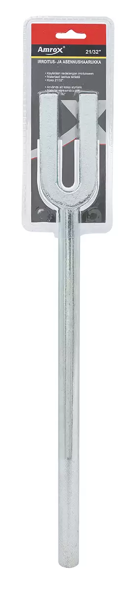 Amrox -käytetään raidetangon irroitukseen -materiaali taottua terästä -koko 21/32" -IP-ripustinpakkaus -ikuinen materiaalitakuu