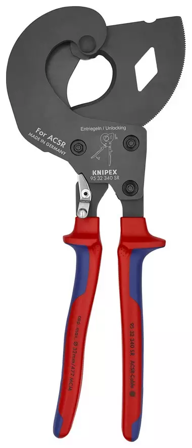 ACSR avojohdinleikkuri 340 mm -kätevä, kompakti, luja -erittäin kestävä versio -katkaisee teräsytimellisen alumiinisen avojohdon max halkaisijaltaan 32 mm yhden ja kahden käden käytössä... Lue lisää