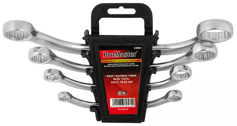 ProMaster -korkealaatuista, karkaistua kromivanadium -terästä -4-osainen sarja sisältää koot 8 x 10 - 11 x 13 - 14 x 17 - 19 x 22 mm -15 asteen kulmaan taivutetut päät, 12PT convex drive... Lue lisää