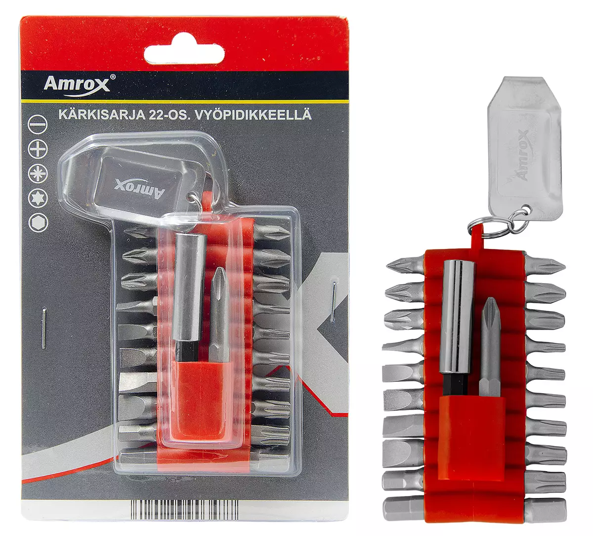 -sarja sisältää --19 kpl ruuvauskärkiä 25 mm (S2) ---uraruuvi 4.0, 5.0, 6.0, 7.0 ja 8.0 mm ---T10, T15, T20, T25, T30 ja T40 ---PH1, PH2 ja PH3 ---PZ1, PZ2 ja PZ3 ---H5, H6 --1 kpl ruuvauskärki... Lue lisää
