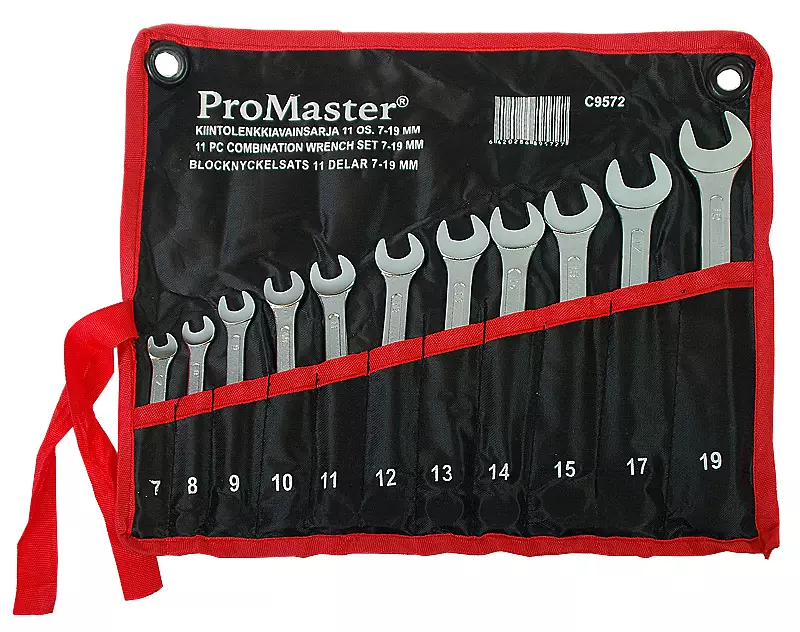 ProMaster -karkaistua CrV-terästä -sarja sisältää koot 7, 8, 9, 10, 11, 12, 13, 14, 15, 17 ja 19 mm -kiillotetut päät -taivutetut, 12-kulmaiset silmukkapäät -standardin DIN 3113 mukainen... Lue lisää