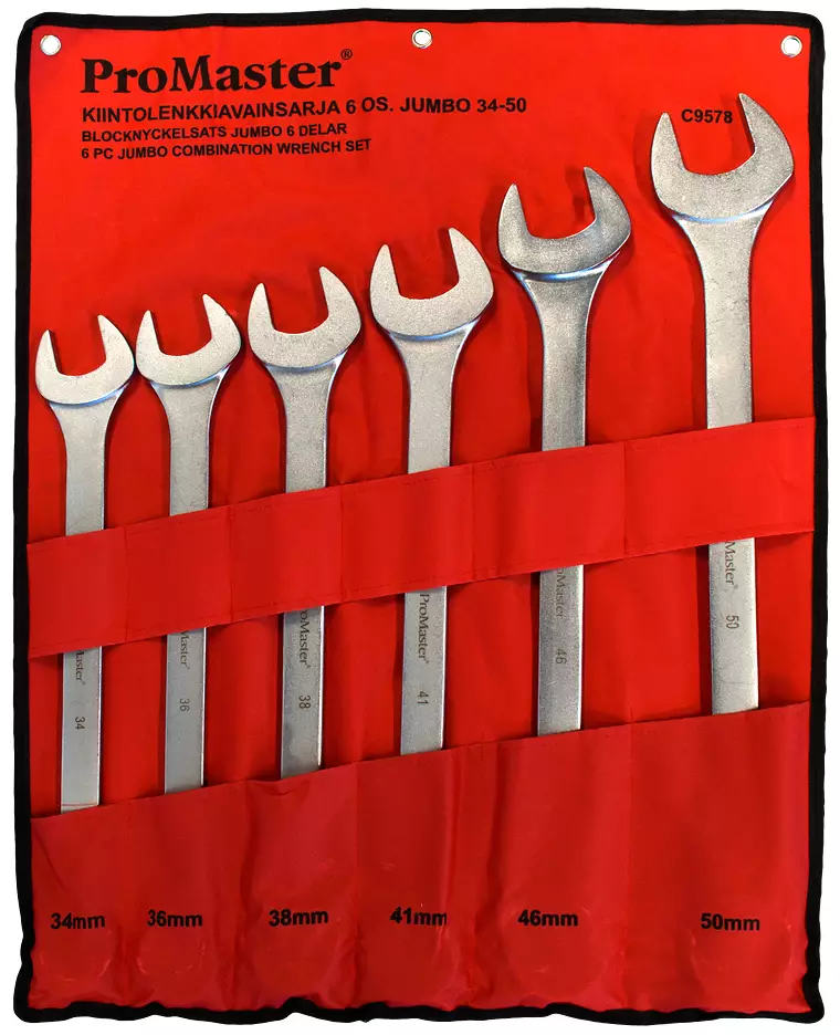ProMaster -seosterästä -6-osainen sarja sisältää koot: --34, 36, 38, 41, 46 ja 50 mm -kätevä käärittävä/ripustettava säilytyspussi -takuu 1 vuosi