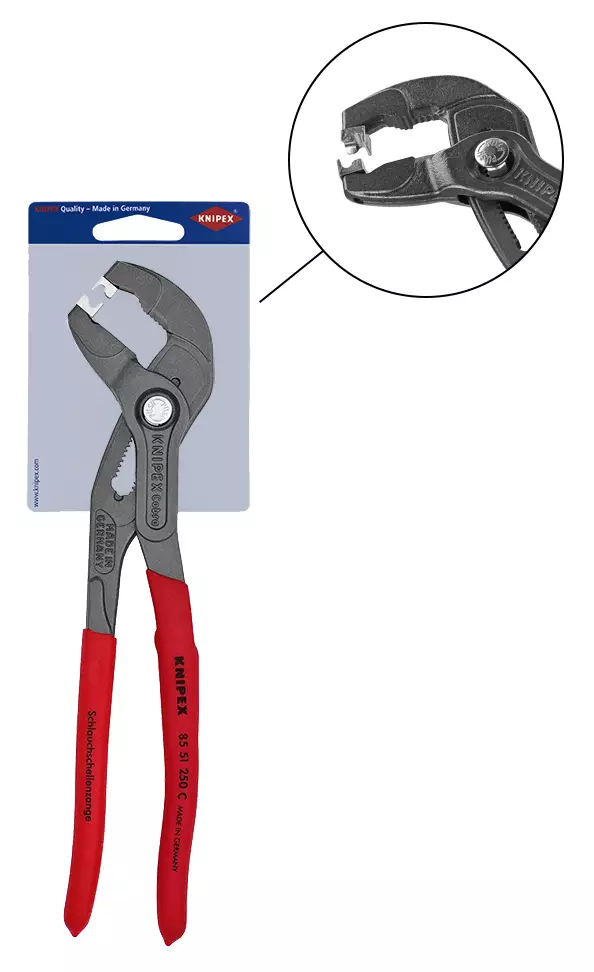 -hyvä vipuvoimansiirto: letkusiteet voidaan avata ja sulkea uudelleen ilman suurta voimankäyttöä varmasti ja helposti