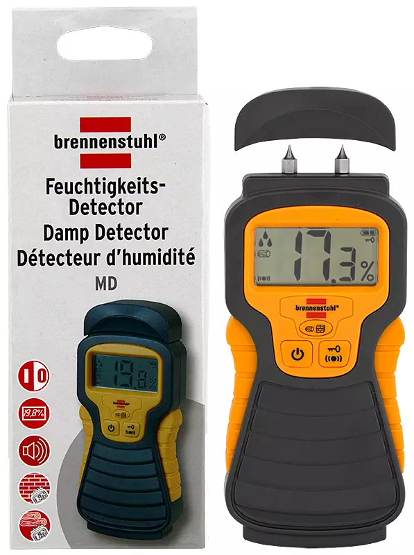 Brennenstuhl -puun tai rakennusmateriaalin kosteuspitoisuuden mittaamiseen, kuten betonin, tiilen, tasoitteiden, kipsilevyn, tapettien jne. -mittausalue 5 - 50% (puu) tai 1,5 - 33% (muut... Lue lisää