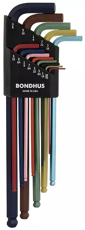 Bondhus MADE IN THE USA -13-osainen avainsarja pallopäällä -koot .050, 1/16, 5/64, 3/32, 7/64, 1/8, 9/64, 5/32, 3/16, 7/32, 1/4, 5/16 ja 3/8” -materiaali: ProTanium -erikoisteräs -ColorGuard... Lue lisää
