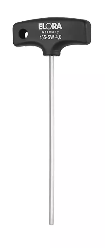 -sisäpuolisille kuusioruuveille -terät niklattu -mustalla T-kahvalla ja jousitusreiällä -ELORA-Chrome-Vanadium 59CrV4 / 1.2242 -DIN ISO 2936