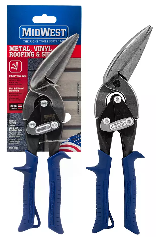 Midwest MADE IN USA MIDWEST® POWER CUTTER® Offset Long Cut levysaksissa on 2,375 tuuman leikkauspituus, joka vähentää uudelleenleikkauksia ja on helpompi käsitellä pitkiä leikkauksia... Lue lisää