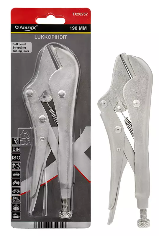 -materiaali kromi-vanadium -teräs -polttoaine-, vesi- ja jarruletkujen puristamiseen -leukojen aukeama 0-23 mm -kahvalukitus -IP-ripustinpakkaus -ikuinen materiaalitakuu