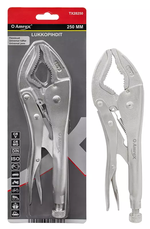 -leukojen materiaali kromi-vanadium -terästä -koko 250 mm -leukojen aukeama 0-55 mm -vapautusvipu helpottaa puristusotteen avaamista -IP-ripustinpakkaus -ikuinen materiaalitakuu... Lue lisää