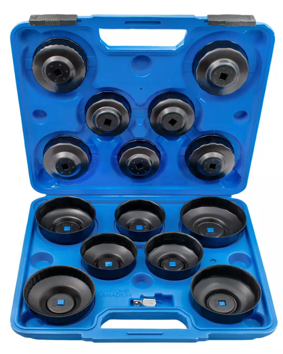 Amrox -materiaali lämpökäsiteltyä, kestävää terästä -pinnoitettu ruostumiselta suojaavalla oksidipinnoitteella -sarja sisältää --14 kpl suodatinavaimia --74/76mm 15-kulmainen --76mm... Lue lisää