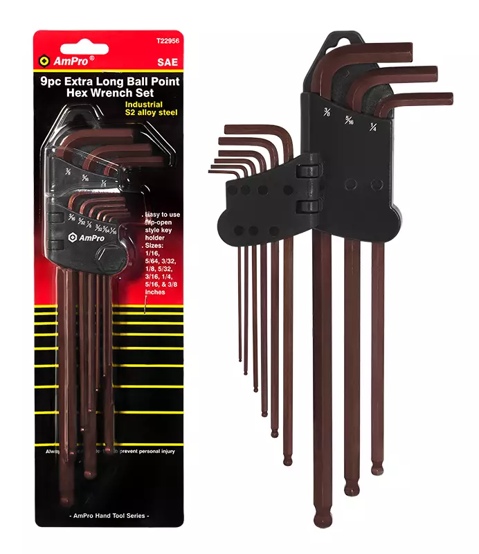 -materiaali S2-seosteräs -9-osainen tuumainen sarja sisältää koot 1/16", 5/64", 3/32", 1/8", 5/32", 3/16", 1/4", 5/16" ja 3/8" -mukana saranoitu kaksiosainen muovipidin -IP-ripustinpakkaus... Lue lisää
