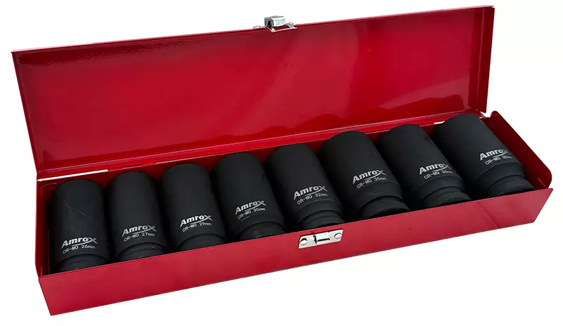 Amrox -materiaali kromi-molybdeeni-terästä -HD-teollisuuslaatua -sarja sisältää: 26, 27, 29, 30, 32, 35, 36, 38mm hylsyt -hylsyjen pituus 90 mm -metallirasia -ikuinen materiaalitakuu... Lue lisää