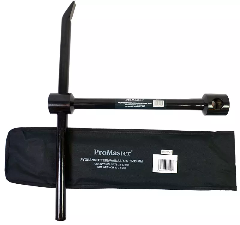 ProMaster -maalattua hiiliterästä -avainkoot 32 mm ja 33 mm -mutteriavaimen varren pituus 40 cm -vääntövarren pituus 50 cm -vääntövartta voi käyttää myös rengasrautana -säilytyspussi... Lue lisää