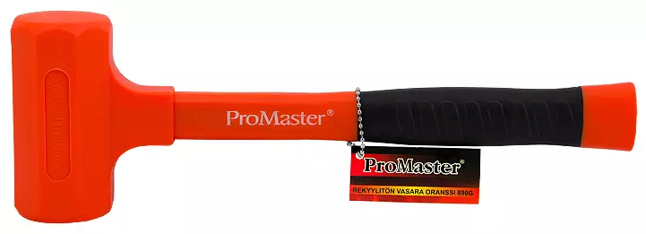 ProMaster -lyöntipään halkaisija 47 mm -paino 890 g -rekyylitön isku -varren materiaali muovia -kumi-grip -kahva -väri oranssi -takuu 1 vuosi