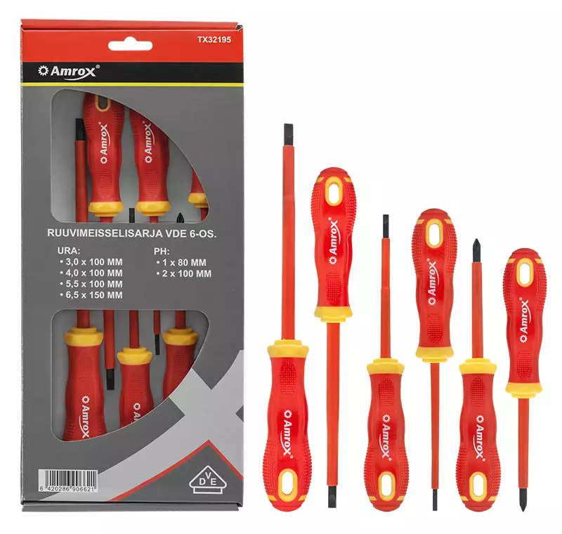 Amrox -eristetyt kahvat suojaavat 1000 V asti -materiaali kromi-molybdeeni-terästä -sarja sisältää: --ura 0.5x3.0x100 --ura 0.8x4.0x100 --ura 1.0x5.5x125 --ura 1.2x6.5x150 --PH1x80 --PH2x100 -VDE... Lue lisää