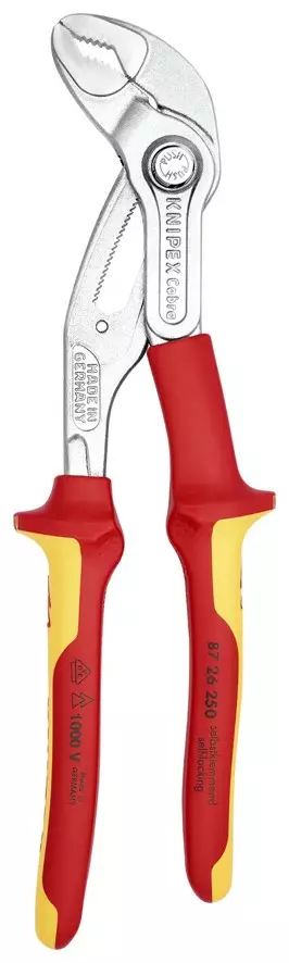 KNIPEX Cobra® VDE kromattu 250 mm -säätö työntämällä suoraan työkappaleeseen: nopea, varma ja helppo käsitellä -avaus nappia painamalla syrjässä työkalusta -hienosäädön ansiosta... Lue lisää