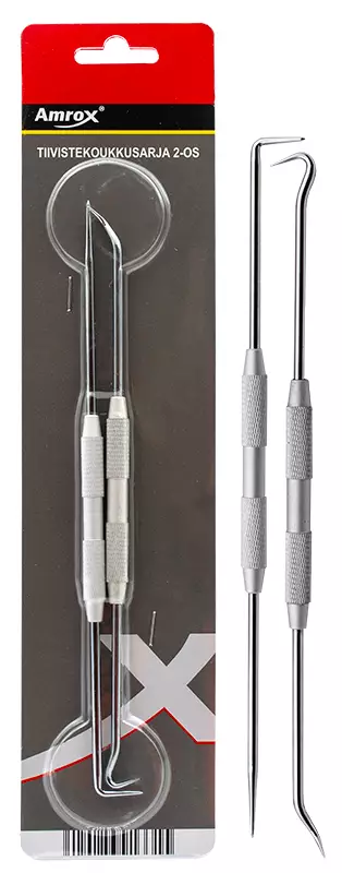 -terä kromi-vanadium -terästä -tiivisteiden, o-renkaiden, muttereiden, klemmareiden, jousien, nastojen, aluslaattojen yms. irrottamiseen ja asentamiseen -sarja sisältää: --1 kpl kaarimainen...