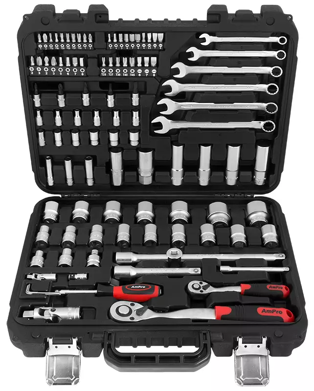 UUSIN MALLI AmProlta -kromi-vanadium -terästä -sarja sisältää: --12 kpl 1/4" 6PT hylsyjä,koot: 4, 4.5, 5, 5.5, 6, 7, 8, 9, 10, 11, 12, 13 mm --18 kpl 1/2" 6PT hylsyjä, koot:... Lue lisää