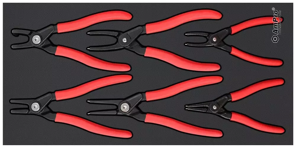 AmPro -sarja sisältää lukkorengaspihdit: --1 kpl puristava, suora kärki 125mm, 12-25 mm --1 kpl levittävä, suora kärki 125mm, 10-25 mm --1 kpl puristava, suora kärki 180mm, 19-60 mm --1 kpl... Lue lisää