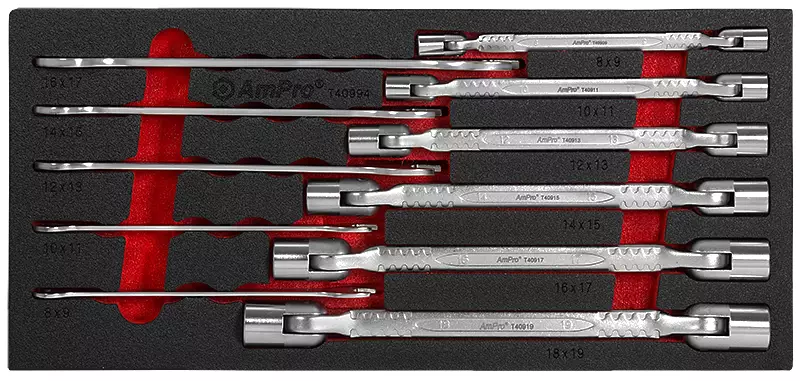 AmPro -materiaali kromi-vanadium -terästä -sarja sisältää piippuavaimet: --8x9mm (T40909) --10x11mm (T40911) --12x13mm (T40913) --14x15mm (T40915) --16x17mm (T40917) --18x19mm (T40919)... Lue lisää