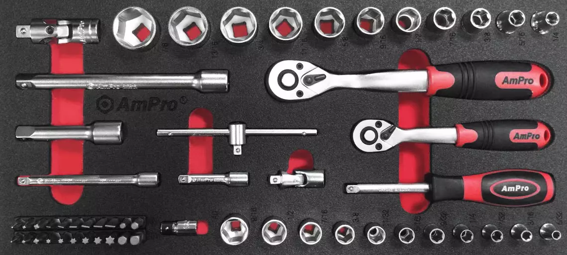 VA-TYÖKALUSARJA 1/4" 3/8" 55-OS.SAE FOAM