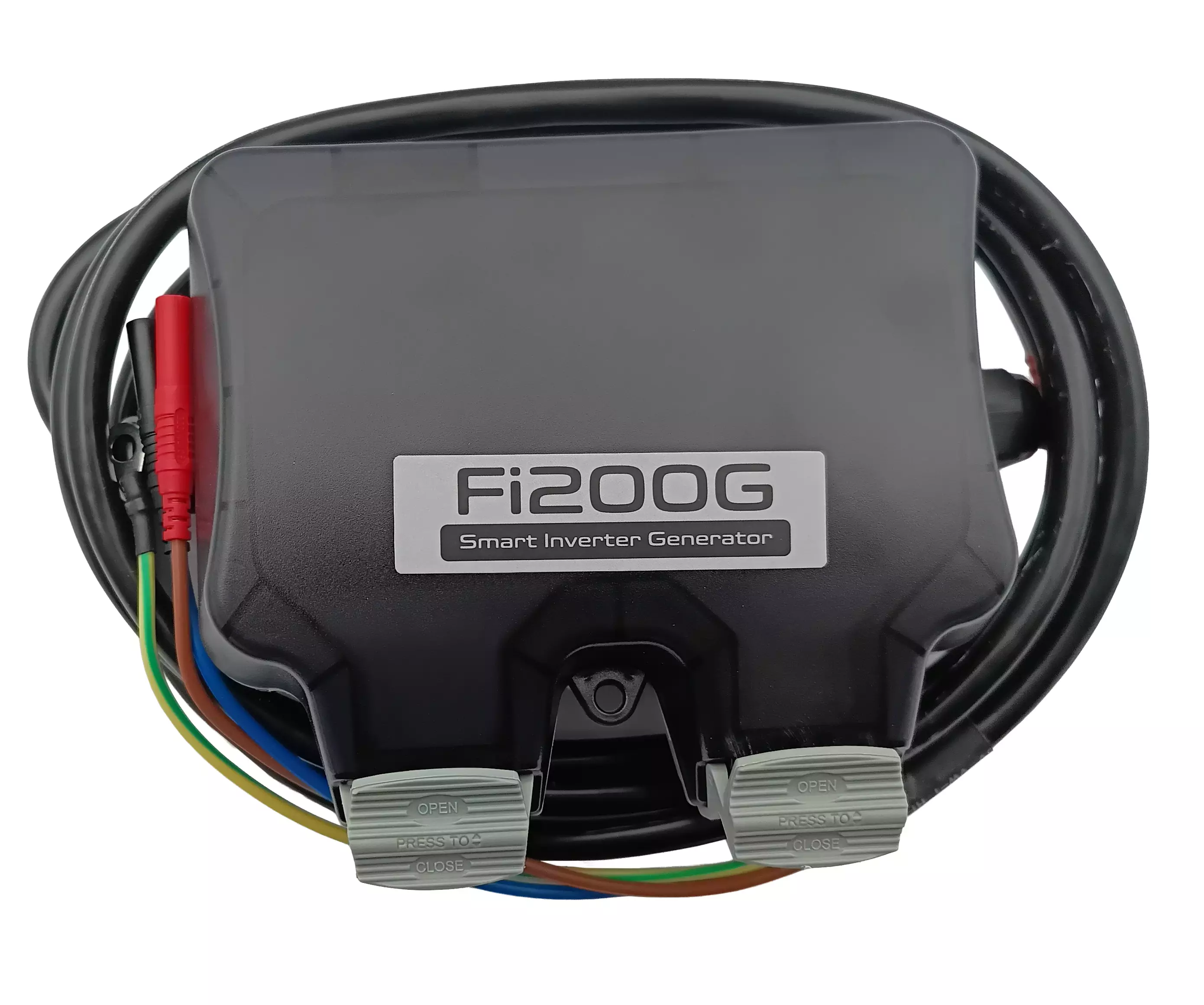 Kytkentäsarja, joka liitetään 2 x Fi200 aggregaatin väliin, jolloin sadaan tuplateho. Kytkentäsarjan suko pistorasiasta.