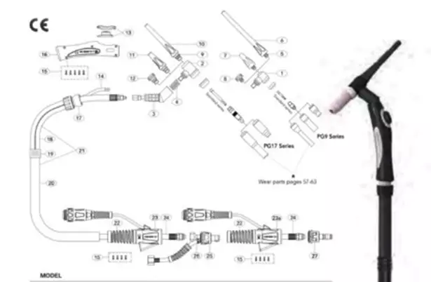 TIG poltin Z - kääntyvällä päällä, WP 17-150A, 4 m