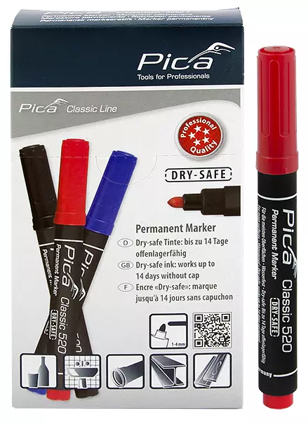 Pica -kynän väri punainen -voidaan käyttää kaikille kiiltäville ja huokoisille pinnoille -viivan paksuus 1-4 mm -poistettavissa alkoholilla tai muilla liuottimilla -kuivuu nopeasti -säilyy jopa... Lue lisää