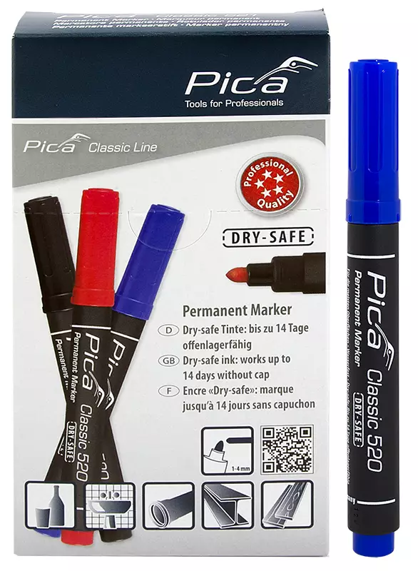 Pica -kynän väri sininen -voidaan käyttää kaikille kiiltäville ja huokoisille pinnoille -viivan paksuus 1-4 mm -poistettavissa alkoholilla tai muilla liuottimilla -kuivuu nopeasti -säilyy jopa... Lue lisää