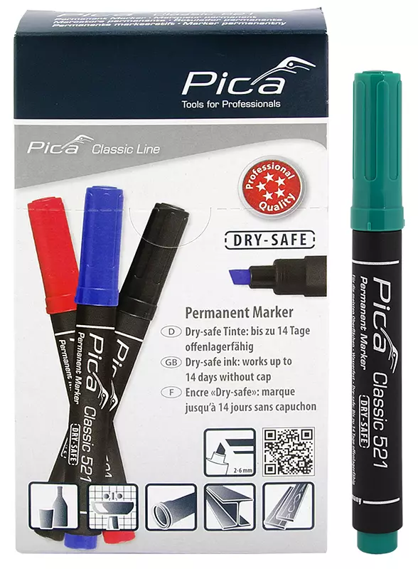Pica -kynän väri vihreä -voidaan käyttää kaikille kiiltäville ja huokoisille pinnoille -viivan paksuus 2-6 mm -poistettavissa alkoholilla tai muilla liuottimilla -kuivuu nopeasti -säilyy jopa... Lue lisää