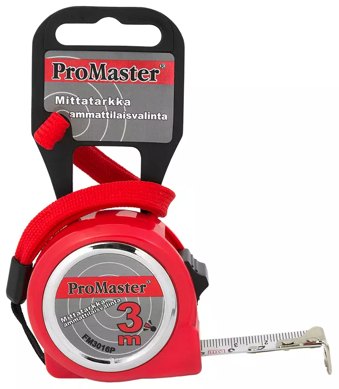ProMaster -metrinen mitta-asteikko -mittanauhan pituus 3 m ja leveys 16 mm -valkoinen, mattapintainen mittanauha -rullamitta muovikuoressa -kuoren väri punainen -erillinen jarru -varustettu... Lue lisää