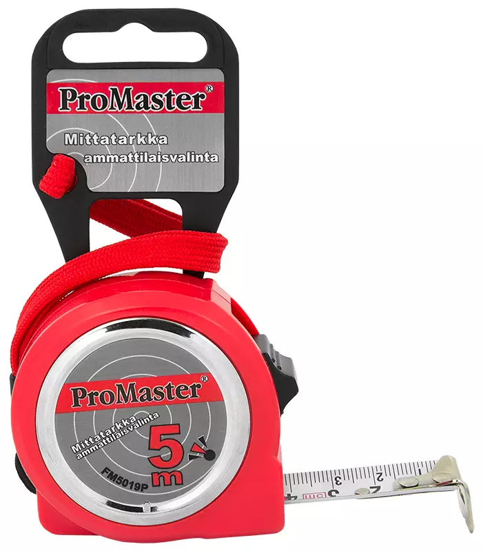 ProMaster -metrinen mitta-asteikko -mittanauhan pituus 5 m ja leveys 19 mm -valkoinen, mattapintainen mittanauha -rullamitta muovikuoressa -kuoren väri punainen -erillinen jarru -varustettu... Lue lisää