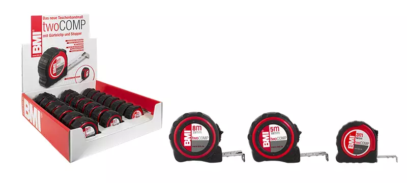 BMI MADE IN GERMANY -sisältää mitat: --8 kpl 3m x 16mm (472 341) --7 kpl 5m x 19mm (472 541) --6 kpl 8m x 25mm (472 841) -metrinen mitta-asteikko -valkoinen, mattapintainen mittanauha -kuoren... Lue lisää
