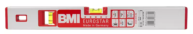 BMI MADE IN GERMANY -alumiininen vesivaaka 2 libellillä -pituus 40 cm -heijastamaton näkymä libelleissä -libelleissä patentoitu tarkkuuslasermerkintä -mittatarkkuus 0.5 mm/m koko tuotteen... Lue lisää