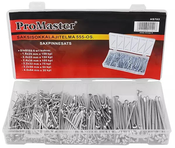 -sarja sisältää --150 kpl 1.6x25 mm saksisokkia --150 kpl 2.4x25 mm saksisokkia --100 kpl 2.4x38 mm saksisokkia --75 kpl 3.2x32 mm saksisokkia --50 kpl 3.2x50 mm saksisokkia --30 kpl 4.0x64 mm... Lue lisää