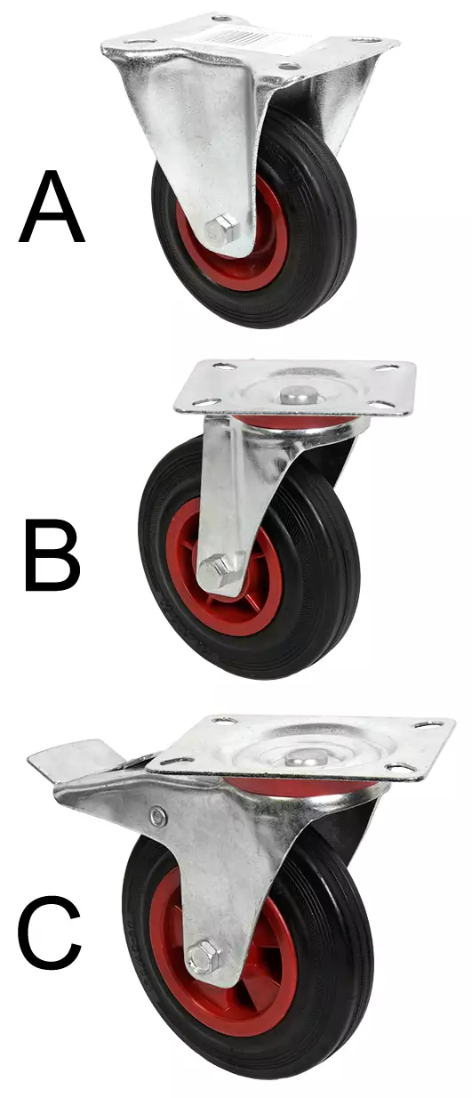 -materiaali umpikumi/polypropeeni -neulalaakeri -muovivanne A Kiinteä B Kääntyvä C Kääntyvä jarrullinen